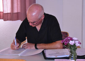 Beeindruckt war Weisser von bereits 36 Jahren, in denen Döring den Ispringer Verein führt – ganz nach dem Vorbild seiner Vorgänger, schließlich hatte der Verein erst vier Vorsitzende. Die beiden Weltkriege hatten den Verein früh erschüttert und bestimmten die Mitgliederzahlen. „Dennoch waren wir eine engagierte Truppe, die immer gearbeitet und zusammengehalten hat“, blickte Döring dankbar zu einigen der heute 64 Mitglieder. Er erinnerte an den Aufbau des Vereinsheims am Winterrain in den Sechzigern und der Zuchtanlage in den Achtzigern. Ein schmerzlicher Einschnitt war ein Großbrand 2014. Dank guter Versicherung gelang der mutige Wiederaufbau: „Und auch die Gemeinde hat stets ein offenes Ohr und wir haben immer eine Lösung gefunden.“ Das hoffe er auch für die kommende Jahre, denn der zum 100-jährigen Jubiläum noch als „Mekka der Geflügelzucht“ bezeichnete Verein hat heute nur noch zwei aktive Züchter, auf die Döring umso mehr baue: „Ich hoffe, dass die wenigen Aktiven der Sauerteig vom Brot sind und sich wieder ausbreiten.“ Dem schloss sich Weisser an, der sich selbst ein Bild gemacht hatte: „Die moderne Zuchtanlage ist jederzeit bereit, neu zu beginnen.“