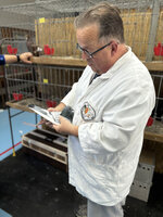 Auf einer Bewertungskarte erhalten die Züchter eine Kurzfassung dessen, was den Richtern an ihren Tieren aufgefallen ist. Dass die Züchter das Angebot gern und dankbar annehmen, zeigt allein schon der Umstand, dass mehr als 160 Tiere zum Bewerten in die Panoramahalle vorbeigebracht werden: ein paar mehr als im Vorjahr. Je älter sie sind, desto eher kann man sie beurteilen. Bei den Kaninchen achten die Richter auf sieben Positionen, unter anderem auf das Gewicht, auf die Körperform, auf das Fell, auf den Pflegezustand und auf die Merkmale, die für die jeweilige Rasse spezifisch sind. Ziel der Aktion ist es, zu verhindern, dass Tiere mit kleinen Fehlern bei den Schauen im Herbst durchfallen und mit „ungenügend“ bewertet werden. „Die Züchter können hier sehen, ob sie auf dem richtigen Weg sind“, erklärt der Kreisvorsitzende der Rassegeflügelzüchter Bernhard Lauinger, der sich schon jetzt auf die Schauen im Herbst freut.