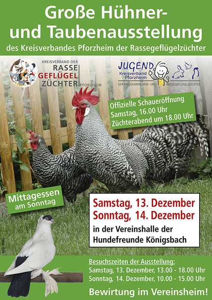 Am 13. und 14. Dezember 2025 findet die diesjährige Kreisgeflügel- und Kreisziergeflügelschau statt. Mit angeschlossen ist auch wieder die Kreisjugendschau.