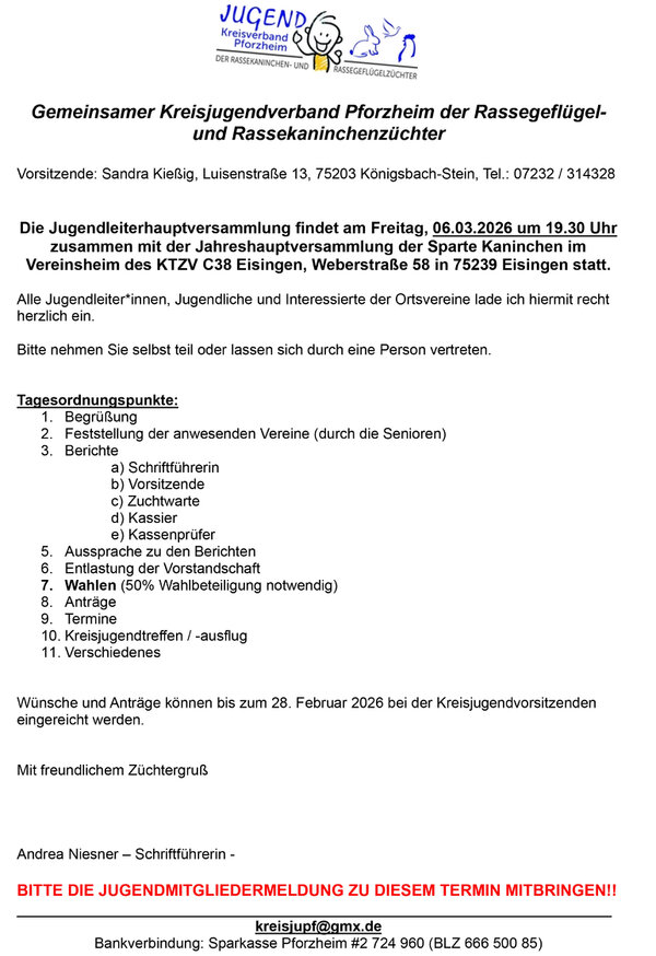 Einladung zur Jahreshauptversammlung nach Eisingen